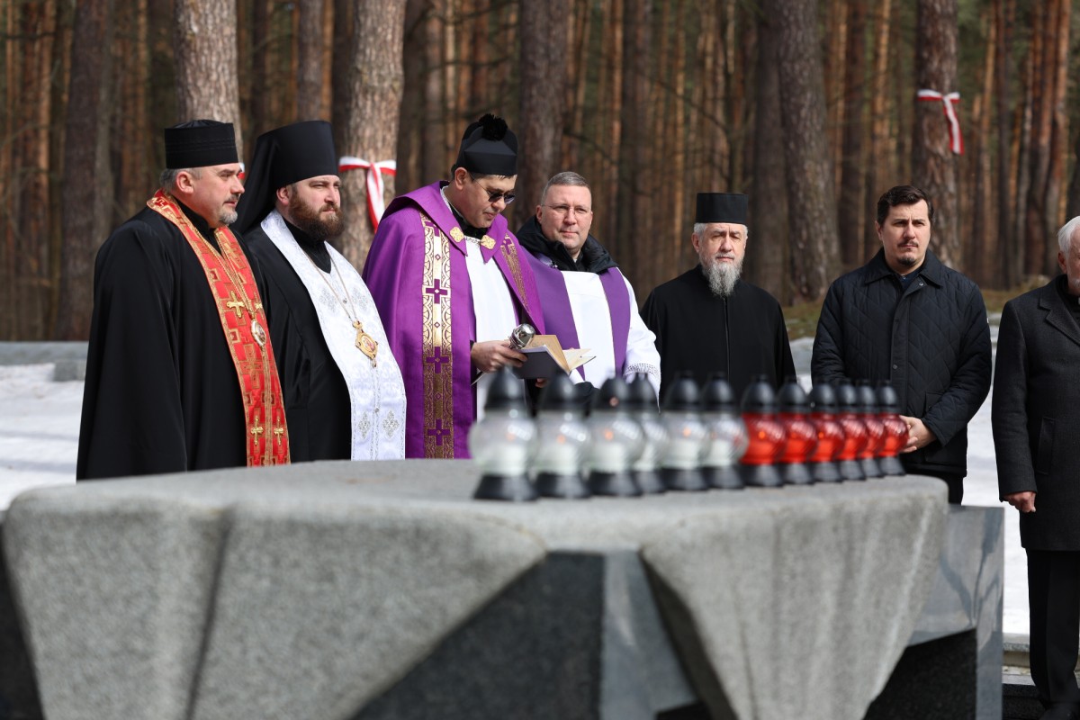 Po modlitwie za ofiary Zbrodni Katyńskiej polska delegacja złożyła wieńce na zbiorowej mogile Polaków oraz przed kurhanem, w którym spoczęły polskie i ukraińskie ofiary stalinowskiego totalitaryzmu.